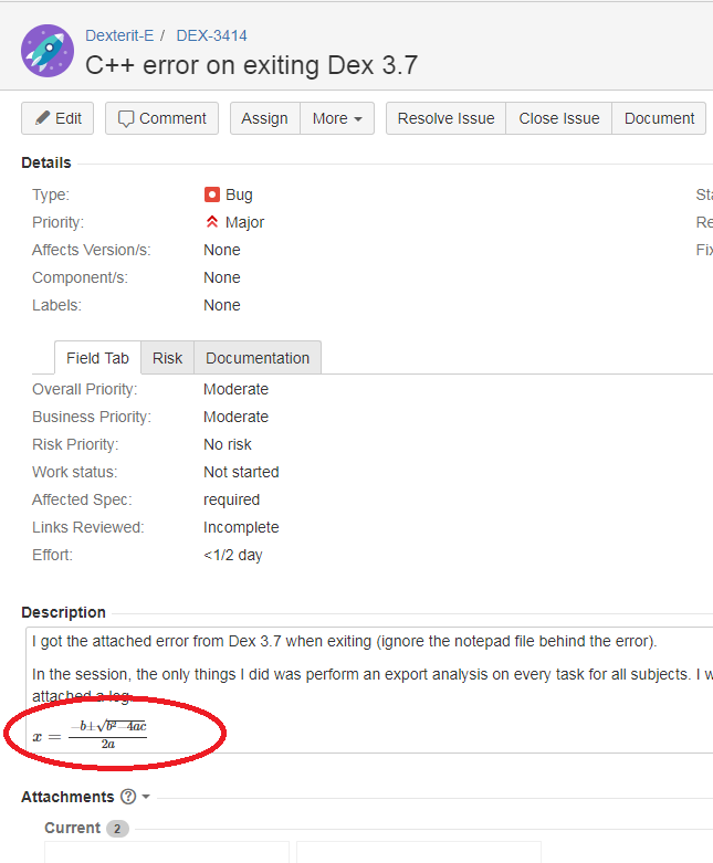 Duncan McLean We put specifications for our software into tickets and that sometimes means inputting mathematical formulas. For our ISO processes we need to take snapshots of our specifications when we do software releases. We make those snapshots PDF's (because we can digitally sign them and most auditors like PDF). For audit and general readability reasons it would be much better for us if the formulas were rendered correctly in our PDFs.